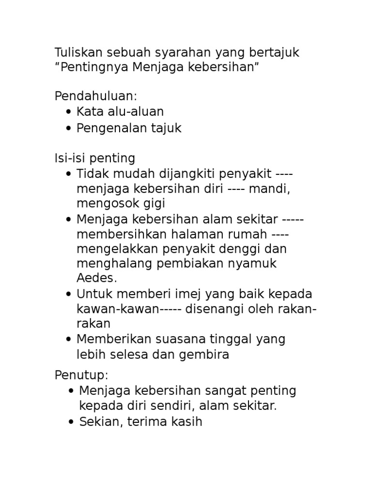 Syarahan Pentingnya Menjaga Kebersihan Pdf